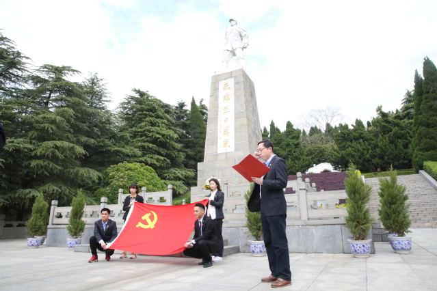為深切緬懷革命烈士,傳承弘揚紅色精神,扎實開展好黨史學(xué)習(xí)教育,會展公司黨支部聯(lián)合南京市貿(mào)促會第七黨支部和六合區(qū)橫梁街道鐘林村黨總支于4月20日下午前往南京市愛國主義教育基地——桂子山烈士陵園,開展以“學(xué)黨史緬懷先烈,踐初心砥礪前行”為主題的黨日活動。市貿(mào)促會第七黨支部全體黨員、會展公司黨支部全體黨員、入黨積極分子和團員以及鐘林村黨總支全體黨員參加了此次活動。