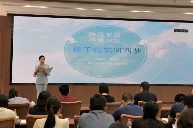 為響應(yīng)集團黨委號召,進(jìn)一步貫徹落實集團半年總結(jié)大會精神,展現(xiàn)職工昂揚向上的精神風(fēng)貌,激發(fā)職工干事創(chuàng)業(yè)的豪邁熱情,7月27日,河西集團總部舉辦了“踔厲奮發(fā)向未來 我與河西共成長”主題演講選拔賽。本次選拔賽由機關(guān)黨總支和機關(guān)工會共同舉辦,共有來自各部室的8組選手參加。各部室主要負(fù)責(zé)人出席了本次比賽并擔(dān)任評委,機關(guān)工會主席、辦公室副主任王俊,集團工會副主席、機關(guān)黨總支書記、黨群工作部部長蘇小剛發(fā)表講話。