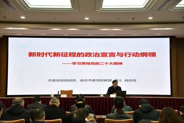 會(huì)上,高信奇教授以《新時(shí)代新征程的政治宣言與行動(dòng)綱領(lǐng)——學(xué)習(xí)貫徹黨的二十大精神》為題,主要從“回顧過去:過去五年的工作和新時(shí)代十年的偉大變革;展望未來(lái):黨的二十大精神的核心要義;把握當(dāng)下:學(xué)習(xí)好宣傳好貫徹好黨的二十大精神”等三個(gè)方面,深入闡述了黨的二十大精神的深刻內(nèi)涵。本次宣講內(nèi)涵豐富、案例鮮活、深入淺出,對(duì)于集團(tuán)全體黨員干部職工全面理解、準(zhǔn)確把握和深入貫徹黨的二十大精神具有很強(qiáng)的指導(dǎo)意義。