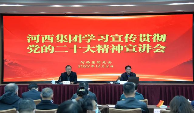 根據(jù)中央和省市委、市國(guó)資委黨委部署要求,12月2日下午,河西集團(tuán)召開學(xué)習(xí)宣傳貫徹黨的二十大精神宣講會(huì),邀請(qǐng)市委宣講團(tuán)成員、市委黨??蒲刑幪庨L(zhǎng)高信奇教授做專題宣講,進(jìn)一步引導(dǎo)集團(tuán)廣大黨員干部職工全面深入學(xué)習(xí)宣傳貫徹黨的二十大精神,切實(shí)把思想和行動(dòng)統(tǒng)一到黨的二十大精神上來(lái),更加深刻領(lǐng)悟“兩個(gè)確立”的決定性意義,不斷增強(qiáng)“四個(gè)意識(shí)”、堅(jiān)定“四個(gè)自信”、做到“兩個(gè)維護(hù)”。會(huì)議由集團(tuán)黨委副書記、董事繆昌根主持。集團(tuán)領(lǐng)導(dǎo)、全體中層干部及集團(tuán)下屬各公司黨務(wù)工作者參加會(huì)議。