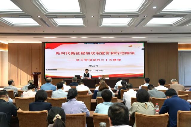 會上,柳云飛教授以《新時代新征程的政治宣言與行動綱領(lǐng)——學(xué)習(xí)貫徹黨的二十大精神》為題,主要從“黨的二十大的主題和主要成果”“黨的二十大提出的新思想新戰(zhàn)略新部署”“黨的二十大的重大意義”“深入學(xué)習(xí)貫徹黨的二十大精神,推動高質(zhì)量發(fā)展”等四個方面,深入闡述了黨的二十大精神的深刻內(nèi)涵。本次宣講內(nèi)容豐富、深入淺出,對于集團(tuán)全體黨員干部職工進(jìn)一步全面理解、準(zhǔn)確把握和深入貫徹黨的二十大精神具有很強(qiáng)的指導(dǎo)意義。