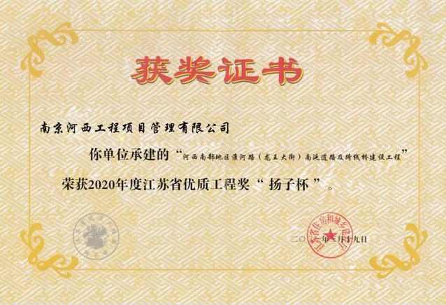 近日,江蘇省2020年度優(yōu)質(zhì)工程獎“揚子杯”獲獎項目名單公布,河西集團(tuán)新城公司所屬南京河西工程項目管理有限公司代建的河西南部地區(qū)淮河路(龍王大街)南延道路及跨線橋建設(shè)工程榜上有名。
