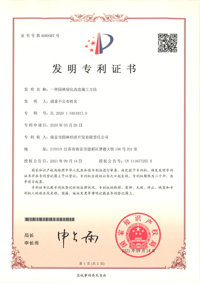 近日,河西集團南京市園林經(jīng)濟開發(fā)有限責任公司喜獲兩項國家發(fā)明專利授權。