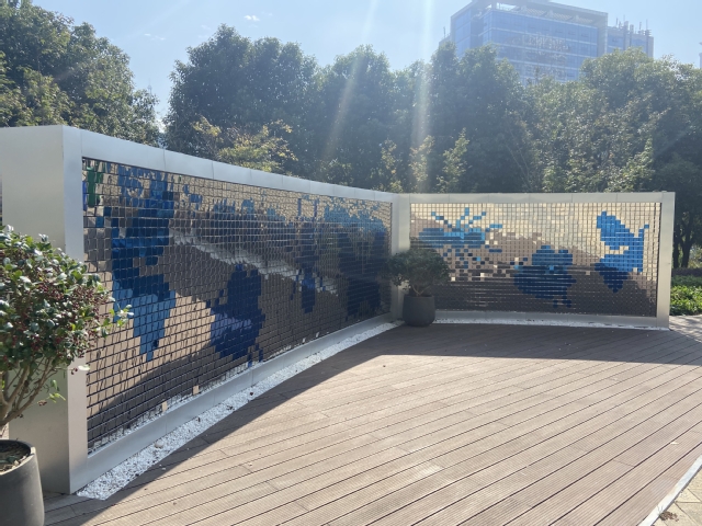 該項(xiàng)目位于南京青奧村,施工面積3000平方米,項(xiàng)目以書和自然(昆蟲)為設(shè)計(jì)理念建成了一個(gè)全方位體驗(yàn)的多感官?gòu)V場(chǎng):在視覺上,活字印刷墻隨光影的變化能夠顯現(xiàn)出千字文的內(nèi)容;在聽覺上,風(fēng)動(dòng)墻和昆蟲互動(dòng)裝置鋁會(huì)發(fā)出特有的聲音;在嗅覺上,垂直綠化墻體上的綠植在開花時(shí)散發(fā)出陣陣花香;在觸覺上,文字互動(dòng)裝置撥動(dòng)雙色滾珠時(shí),可組成不同文字或圖案。
