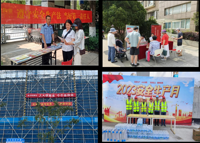 結(jié)合今年“安全生產(chǎn)月”的主題,集團(tuán)通過(guò)一系列宣傳活動(dòng)把“安全生產(chǎn)月”的要求和精神傳導(dǎo)到基層,組織下屬公司策劃了多個(gè)深入基層一線、群眾喜聞樂(lè)見(jiàn)的宣傳活動(dòng)。物業(yè)公司舉辦講座6場(chǎng),懸掛橫幅48條,布置海報(bào)架或張貼海報(bào)33張,派發(fā)宣傳單800余份,持續(xù)不斷增強(qiáng)活動(dòng)影響力,形成了階段性宣傳熱潮;紫金商管公司成立義務(wù)宣傳小組,重點(diǎn)在社區(qū)中心、商業(yè)街區(qū)、裝修工地懸掛橫幅10余幅,現(xiàn)場(chǎng)發(fā)放安全生產(chǎn)小貼士、消防逃生小知識(shí)、滅火器使用方法等安全知識(shí)宣傳冊(cè)共計(jì)500余份;新城公司設(shè)計(jì)制作了安全生產(chǎn)管理宣傳單以及現(xiàn)場(chǎng)應(yīng)急救援知識(shí)折頁(yè),將安全生產(chǎn)防范知識(shí)傳遞到每個(gè)項(xiàng)目、每個(gè)工人。