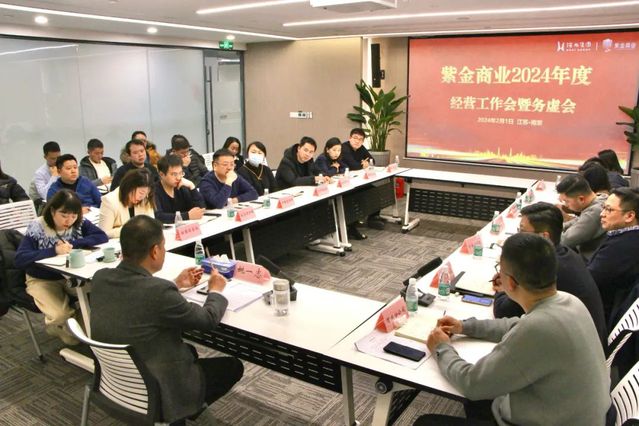 凱歌辭舊歲,金龍迎新春。2024年2月1日,紫金商管公司召開了2024年度經(jīng)營工作會暨務(wù)虛會。首先,招商運營部通報2023年各項經(jīng)營指標(biāo)完成情況、店長排名和“五拼五比曬五榜”年度榜單,傳達2024年度各項經(jīng)營指標(biāo)。