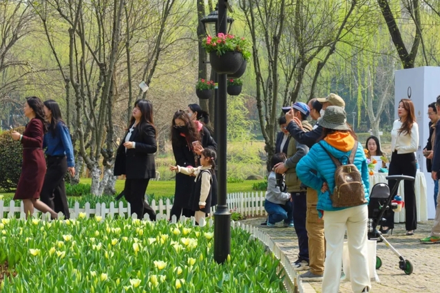 春意盎然,花海繽紛,各色郁金香隨風(fēng)搖曳,吸引眾多市民游客駐足拍照、記錄春景。如今,綠博園郁金香已經(jīng)成為南京春日賞花的一張“金色名片”,春花與游人,共同繪就成一幅和諧優(yōu)美的畫(huà)卷。