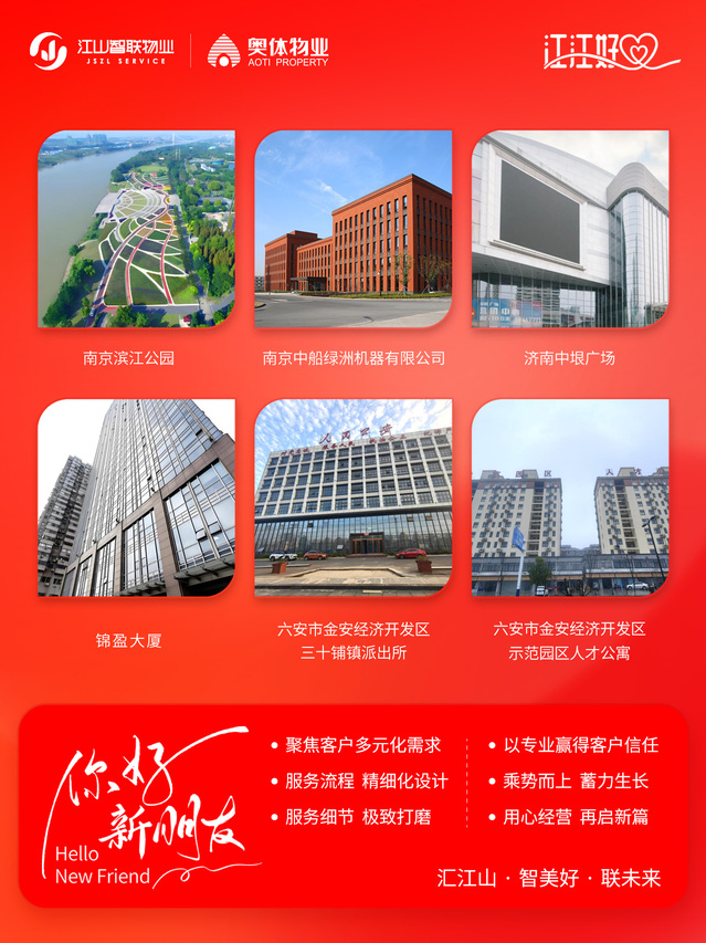 聚焦客戶多元化需求,用專業(yè)贏得客戶信任。江山智聯(lián)物業(yè)將持續(xù)精細(xì)化設(shè)計(jì)服務(wù)流程、極致打磨服務(wù)細(xì)節(jié),乘勢向上、用心經(jīng)營,新年再啟新篇。